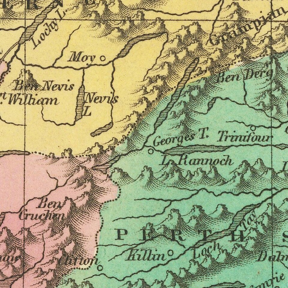 Decorative and detailed map of Scotland, colored by Counties, from Finley's New General Atlas.
