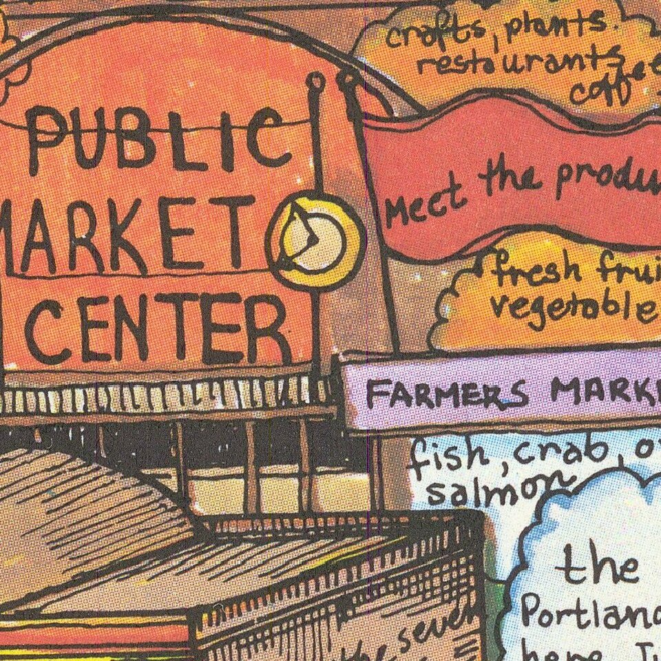 A magnificent tour de force of pictographic detail. Signed only "Robbie," we are relatively certain that the artist is Robby Nyman, who produced several other similar city view pictorial maps in the early 1970s, while based in Vancouver.