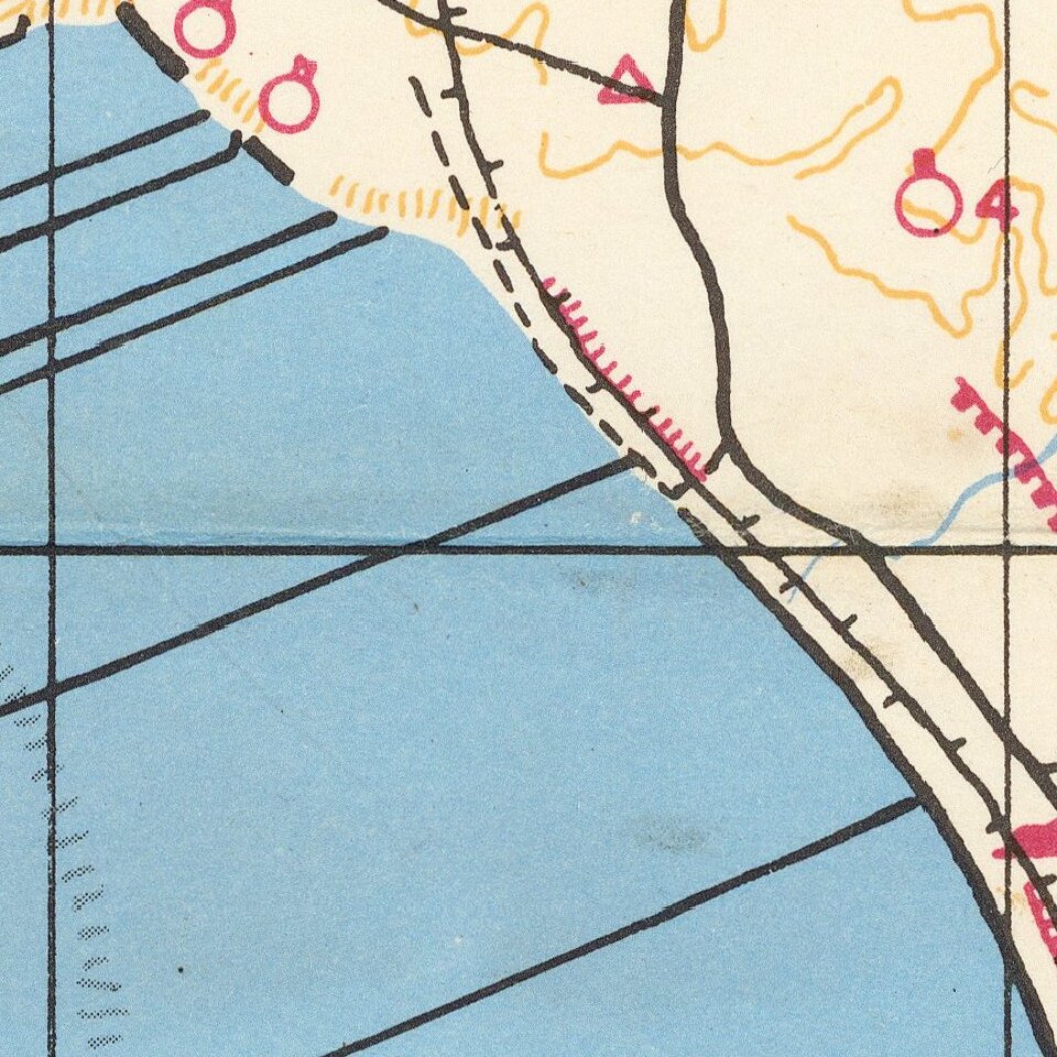 Fantastic color-printed map "prepared at the request of 10th ARMY" showing the west coast of Okinawa and the extent of the U.S. landing beaches on the island. The map was produced by the U.S. Navy Photographic Interpretation Squadron Two (Interpron Two) with revisions to March 14-19, 1945. The base map is AMS-2 Revised to January 1945, the defenses shown were updated through March 1, 1945.