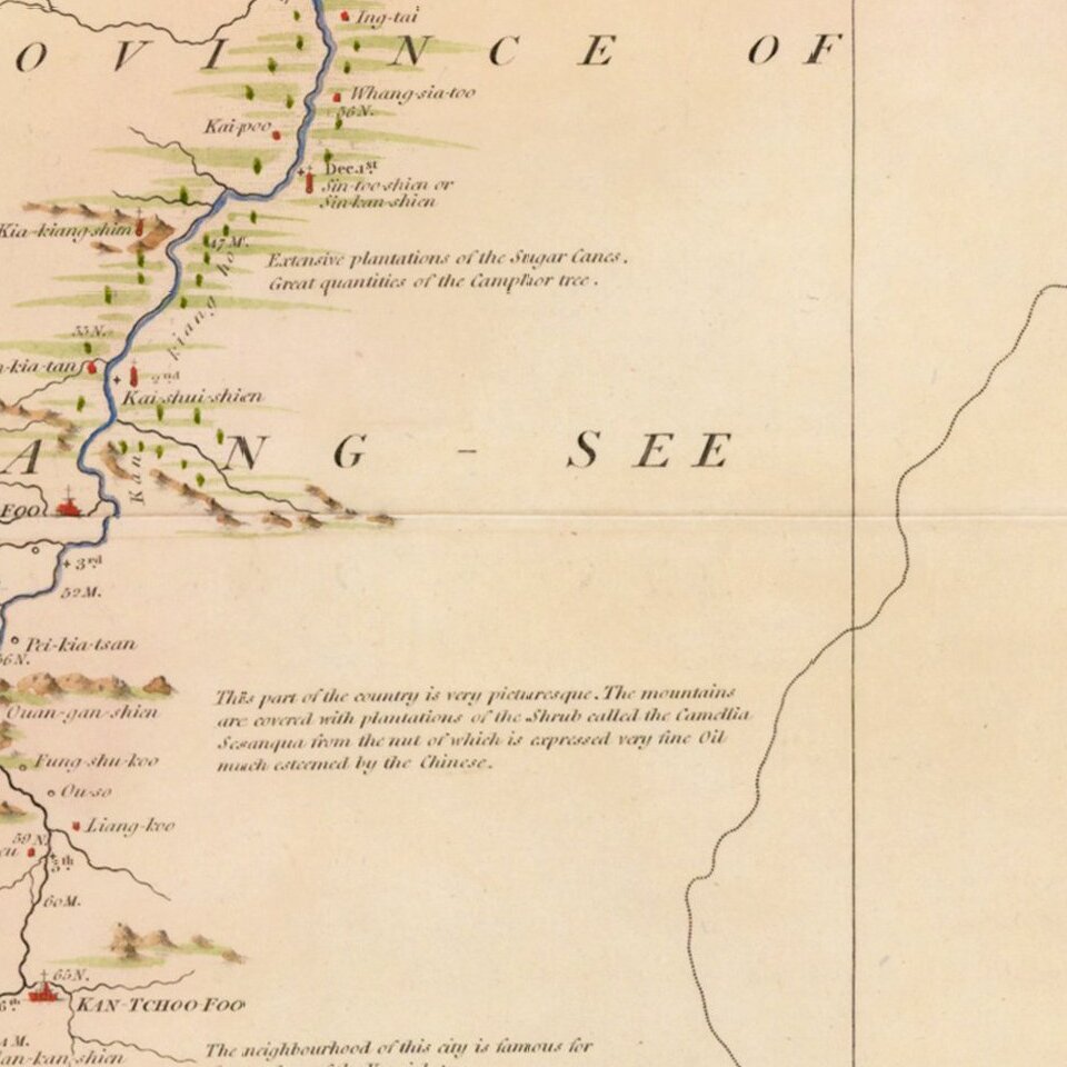 The map shows the second part of Macartney's return from the summer palace at Chengde, north of Beijing, after meeting the Emperor. He returned to Beijing overland, before travelling south to Hangzhou (Hang-Tchoo Foo) on the Yangtze River delta via the 1000-mile Great Canal of China. Diplomatically, the mission was a complete failure, as the Emperor proved entirely unwilling to consider trade concessions, however, the trip yielded Europeans valuable new information on China's geography and social customs.