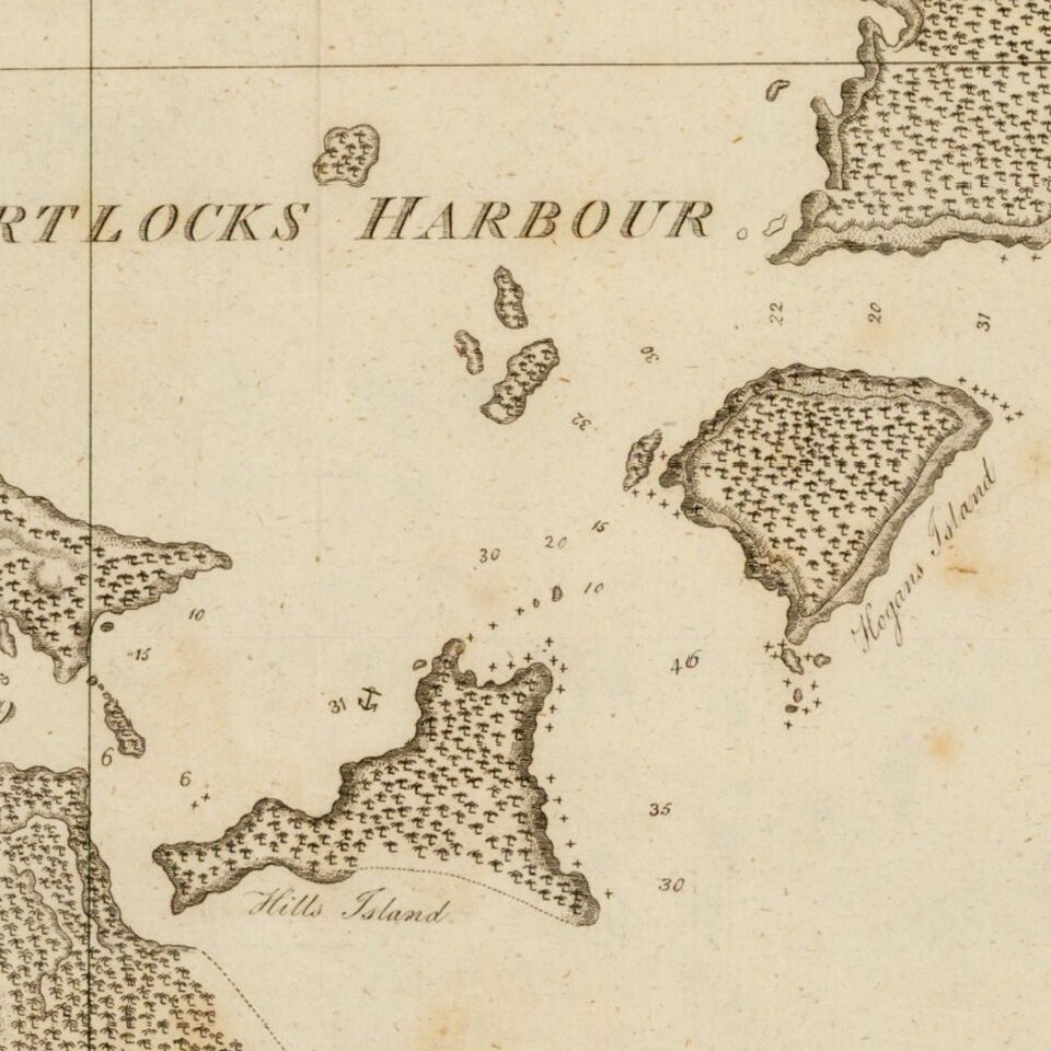 Rare early sketch map of Portock Harbor and Goudling Harbor, north of Sitka and west of Juneau Alaska, from Geroge Dixon's Voyage round the World; but More Particularly to the North-West Coast of America: Performed in 1785, 1786, 1787, and 1788, in the King George and Queen Charlotte, Captains Portlock and Dixon, published in 1789.