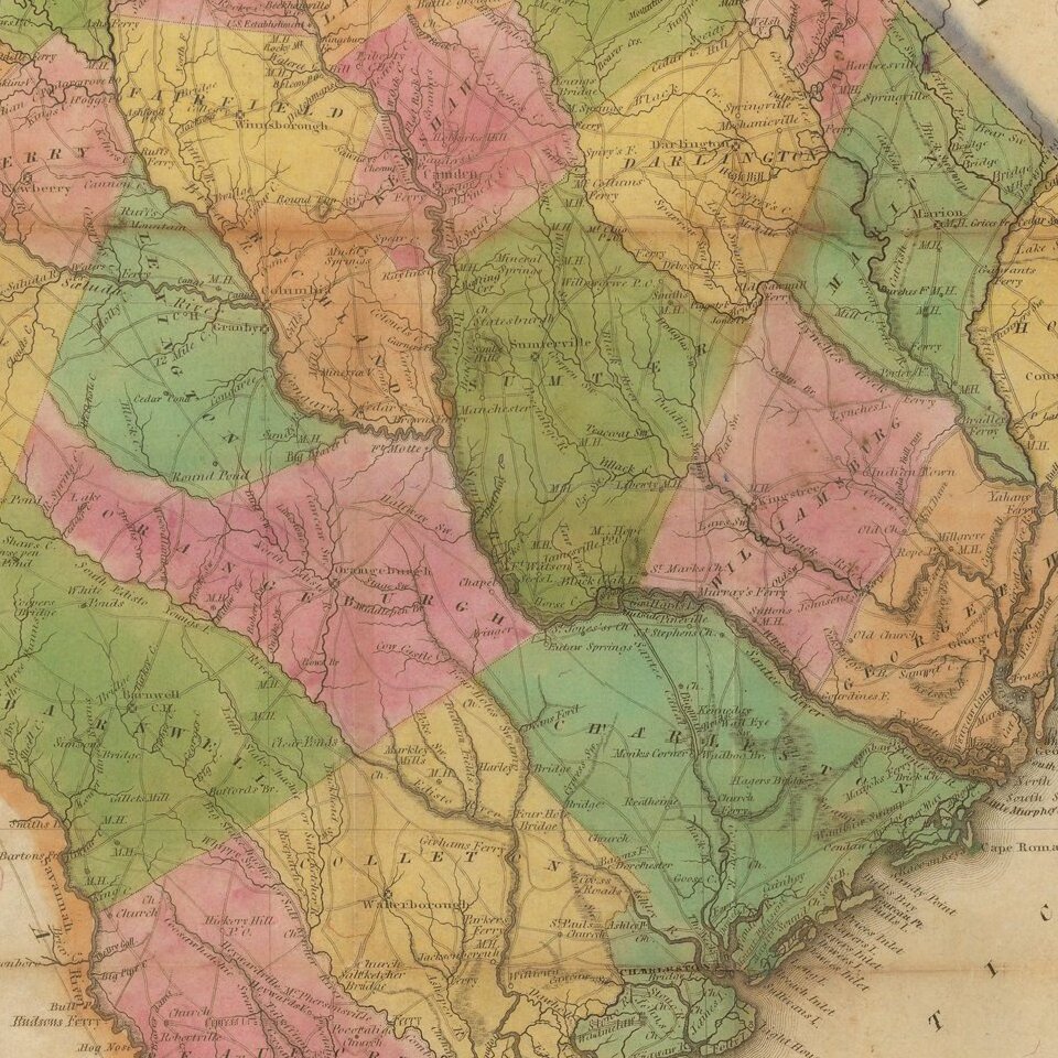 This is the earliest pocket maps of South Carolina we have ever seen and the first time we have ever seen a Carey & Lea pocket map. The map appears to be the same as Carey & Lea's Atlas map of South Carolina, without the surrounding text panels.