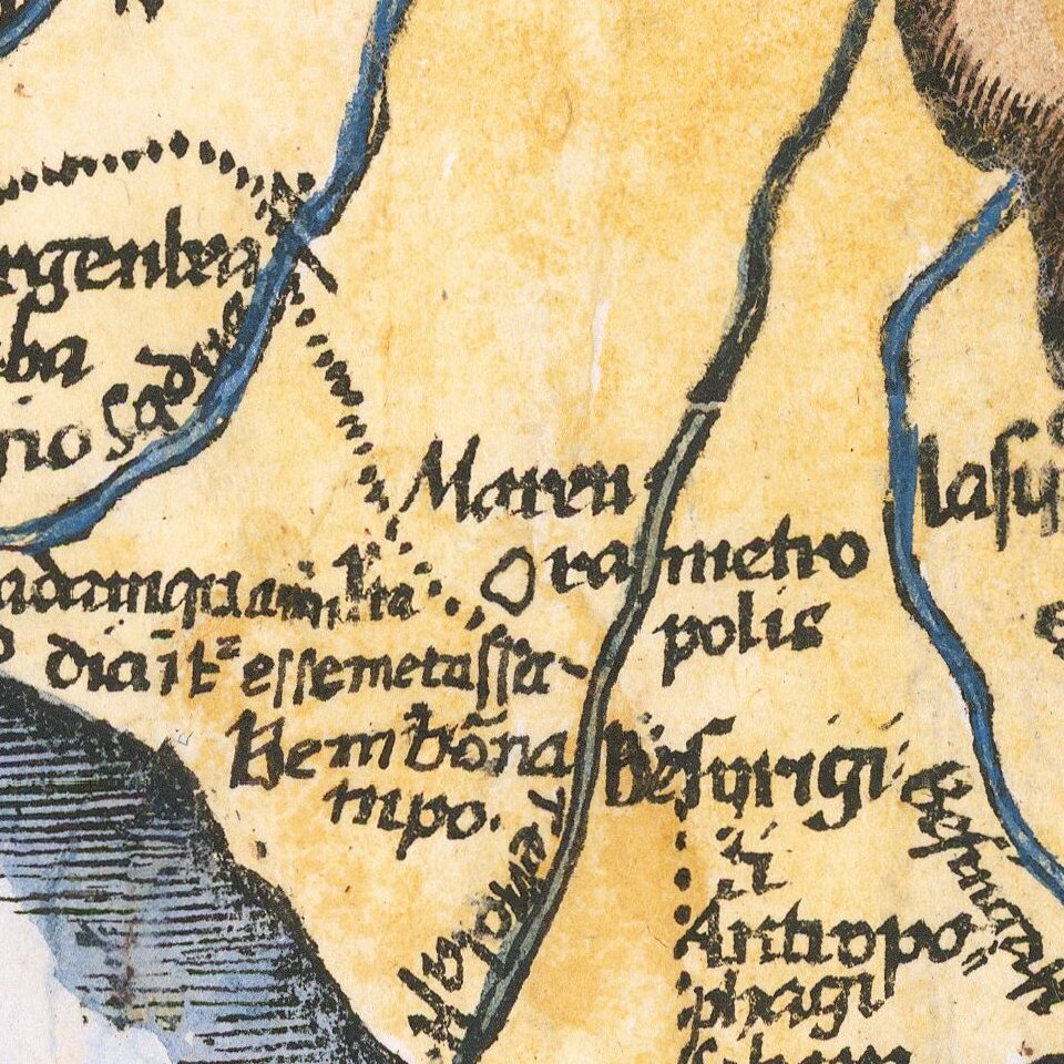 Lorenz (Laurent) Fries (ca. 1485-1532) was born in Mulhouse, Alsace. He studied medicine, apparently spending time at the universities of Pavia, Piacenza, Montpellier and Vienna. After completing his education, Fries worked as a physician in several places before settling in Strasbourg in about 1519. While in Strasbourg, Fries met the Strasbourg printer and publisher Johann Grüninger, an associate of the St. Dié group of scholars formed by, among others, Walter Lud, Matthias Ringmann and Martin Waldseemüller.