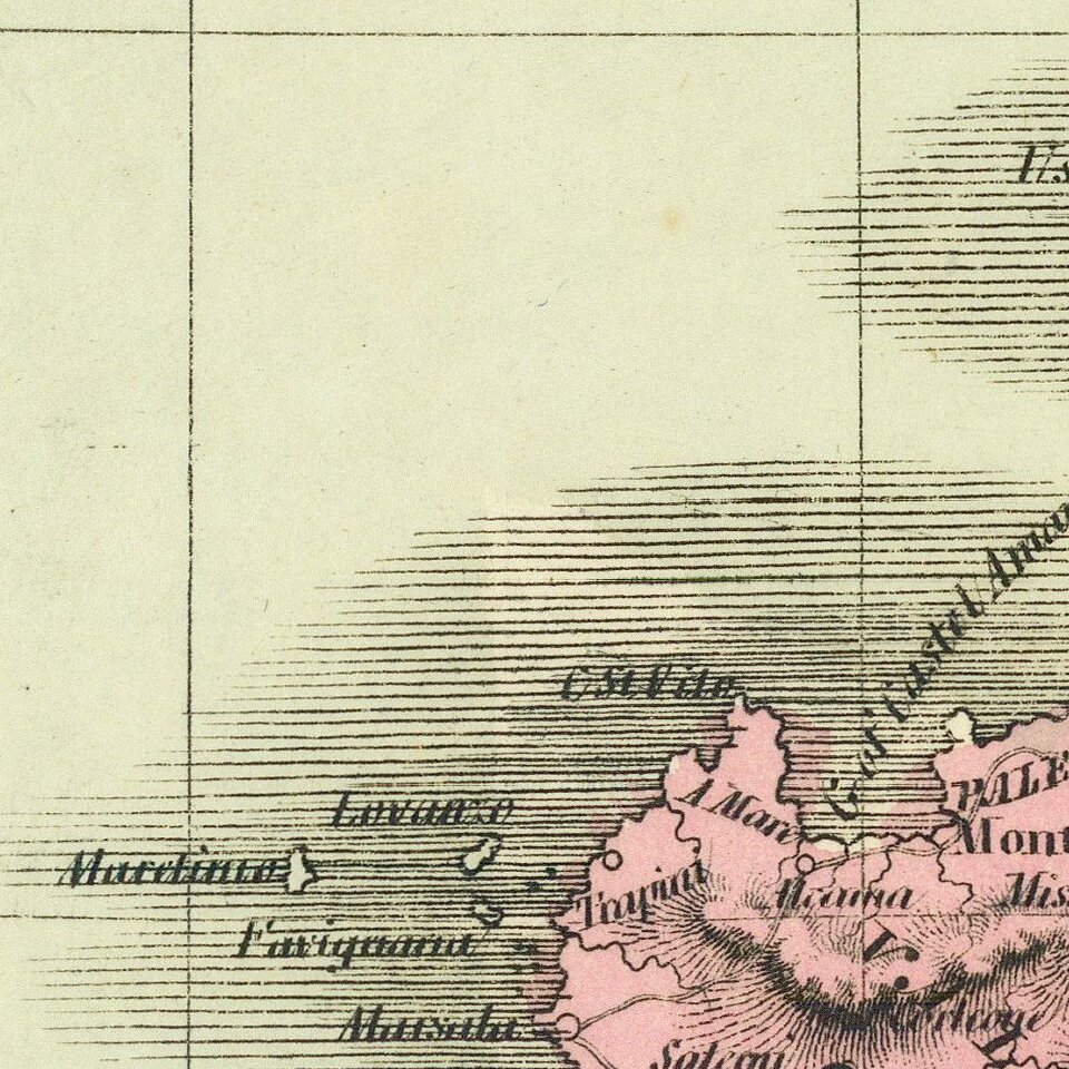 Striking full hand-color engraved map of Italy (with Sicily, Sardinia, Malta and Part of Corsica), which appeared in David Burr's Universal Atlas, in 1836.