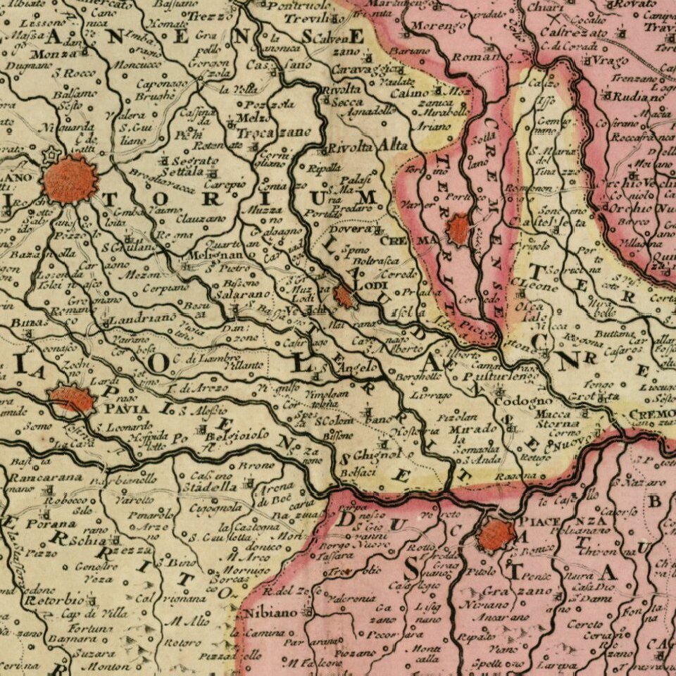 Striking old color example of Valk's scarce map of Northern Italy.