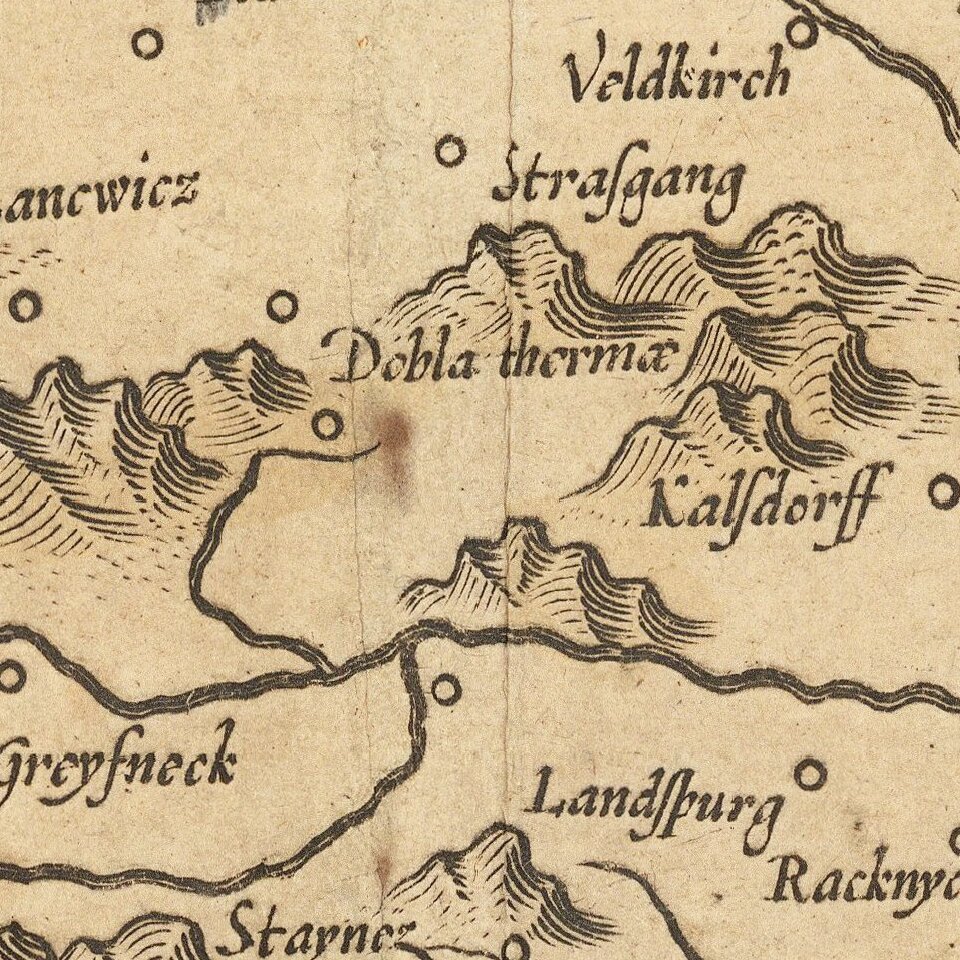 Detailed map of Stiria, centered on the course of the Dranus River and the Mura River.