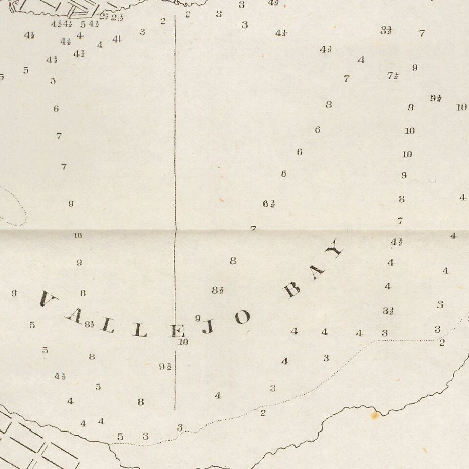The chart shows the primary anchorages in San Francisco Bay and environs at the outset of the 1849 California Gold Rush.