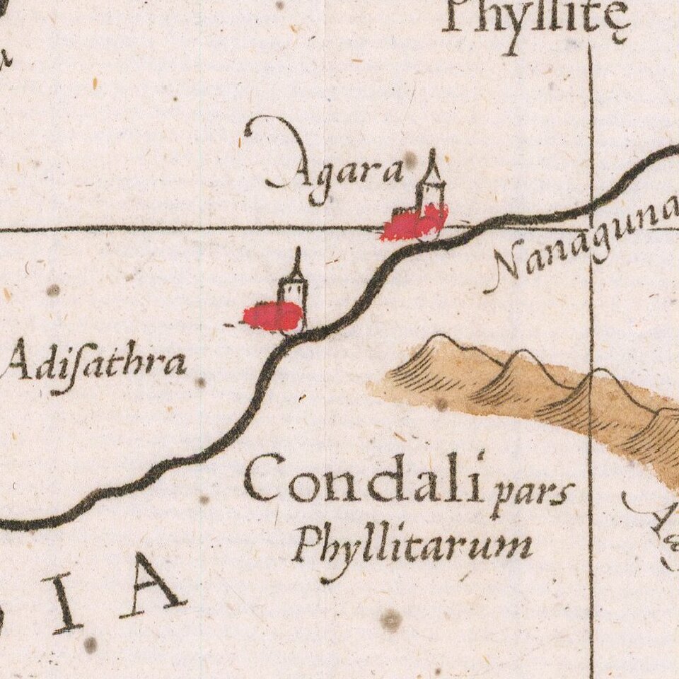 Colored example of Mercator's Ptolemaic map of much of India, first issued in the 1595 edition of Mercator's Geographia, based upon the works of Claudius Ptolemy.