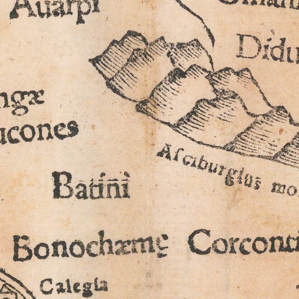 Münster published his first known map, a map of Germany, in 1525. Three years later, he released a treatise on sundials. In 1540, he published Geographia universalis vetus et nova, an updated edition of Ptolemy’s Geographia. In addition to the Ptolemaic maps, Münster added 21 modern maps. One of Münster’s innovations was to include one map for each continent, a concept that would influence Ortelius and other early atlas makers. The Geographia was reprinted in 1542, 1545, and 1552.