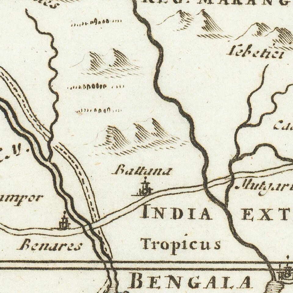 The sea route from Goa to Macao is depicted. Many overland routes are also shown.