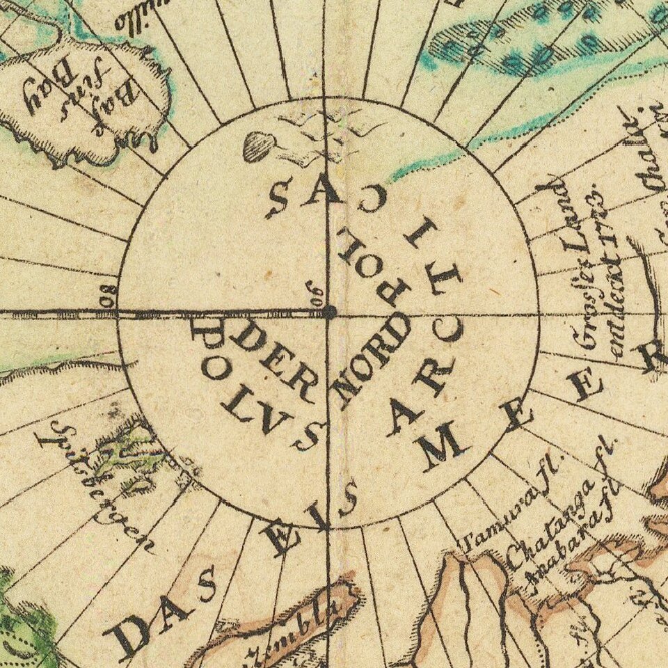 Scarce map of the Northern Hemisphere, published in Berlin by noted mathematician Leonhard von Euler.