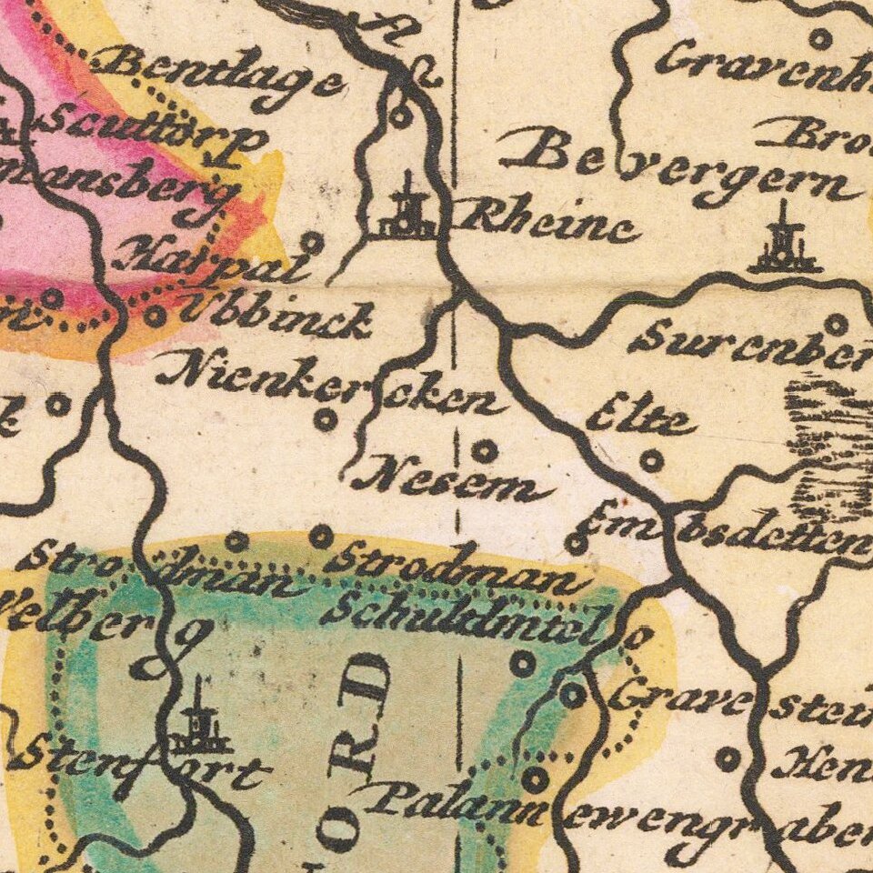 Fine old color example of Schenk's map of the northwestern part of Germany.