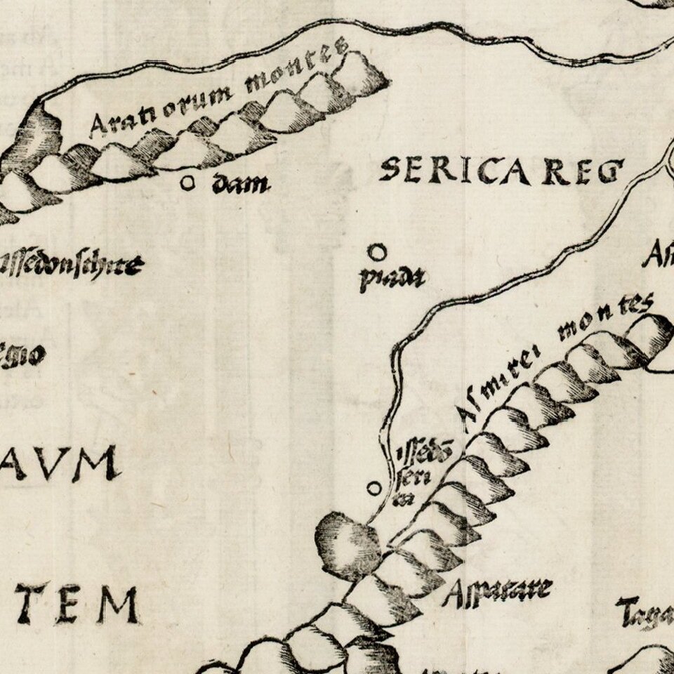 Gorgeous Ptolemaic map of Central Asia and Tartary and Western China, from Lorenz Fries' edition of Ptolemy's Geographia.
