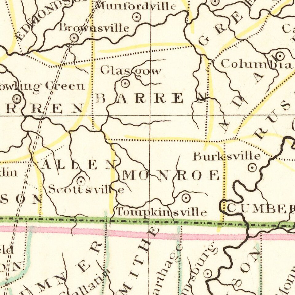 Early map of Kentucky & Tennessee, published by Bradford.