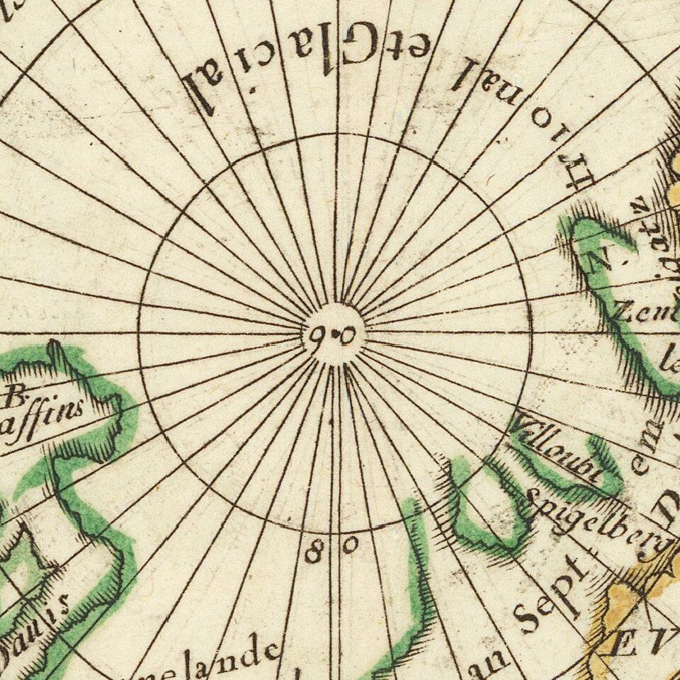 The map provides a fine accounting of the lands of the Polar regions, which remained largely unexplored.