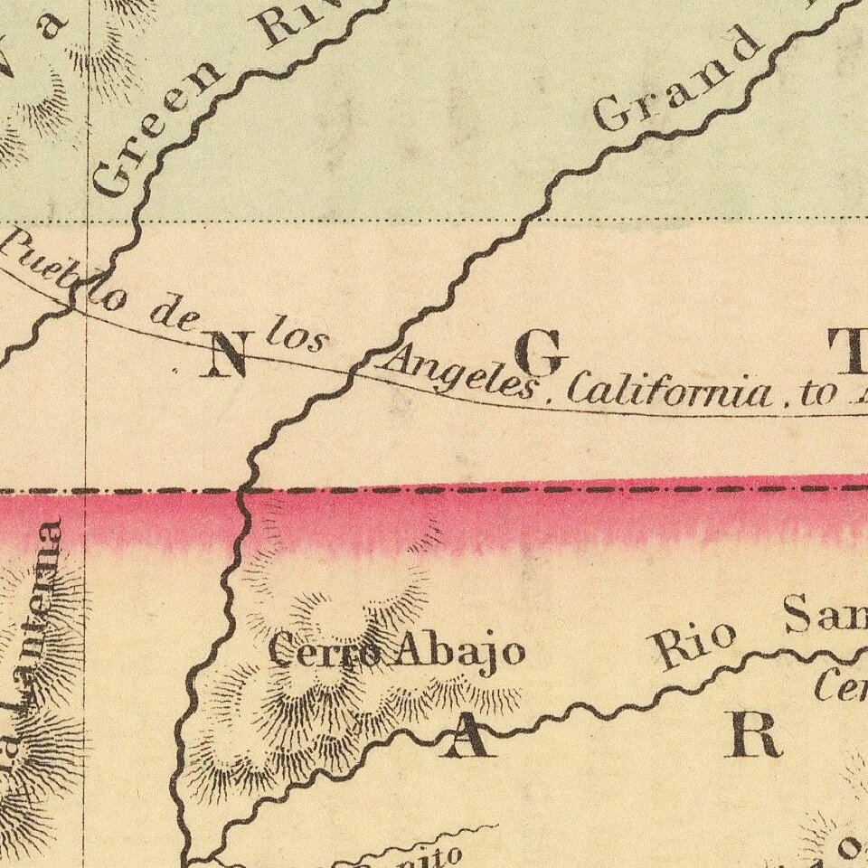 This map shows Fremont's 1844 and 1845 routes, the Spanish trail from Los Angeles to New Mexico, Kearney's Route, Col. Washington's Expedition, the Cimmarron Route, and the location where Capt. Gunnison was ambushed by the Ute Indians. In addition, the map notes the proposed route of the Pacific railroad. The map also locates numerous forts, roads, Indian settlements, and a host of other early geographical features. This includes many dry arroyos as well as complex topography in the Basin and Range area. Numerous annotations provide historical context, for example southern Arizona is labeled "disputed territory."