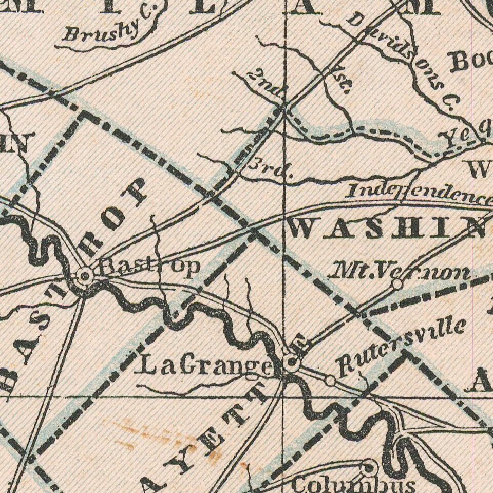 Scarce map of the Republic of Texas, extending west to the Presidio Rio Grande and the Rio Colorado and its tributaries.