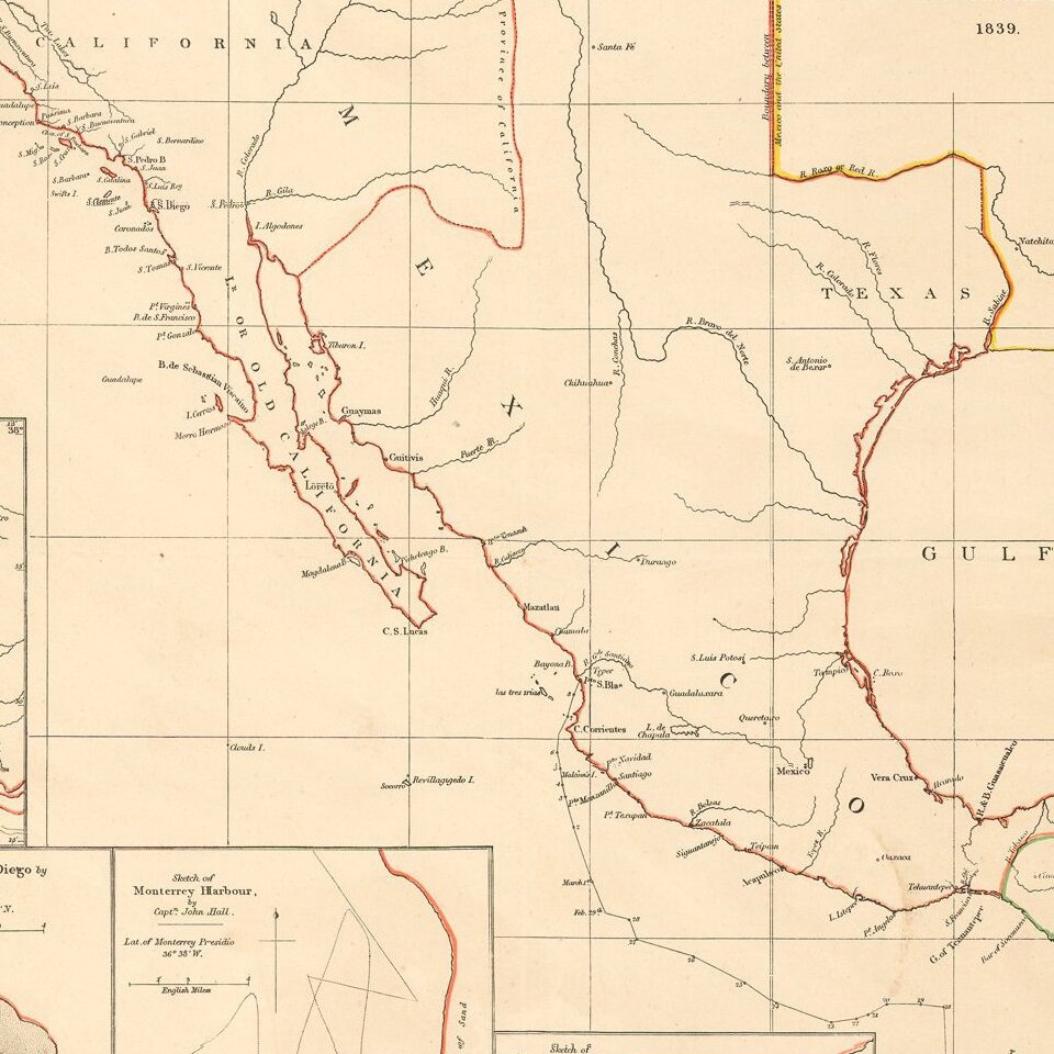 Rare early map of Mexico and Upper California, focusing on the harbors along the California Coast.