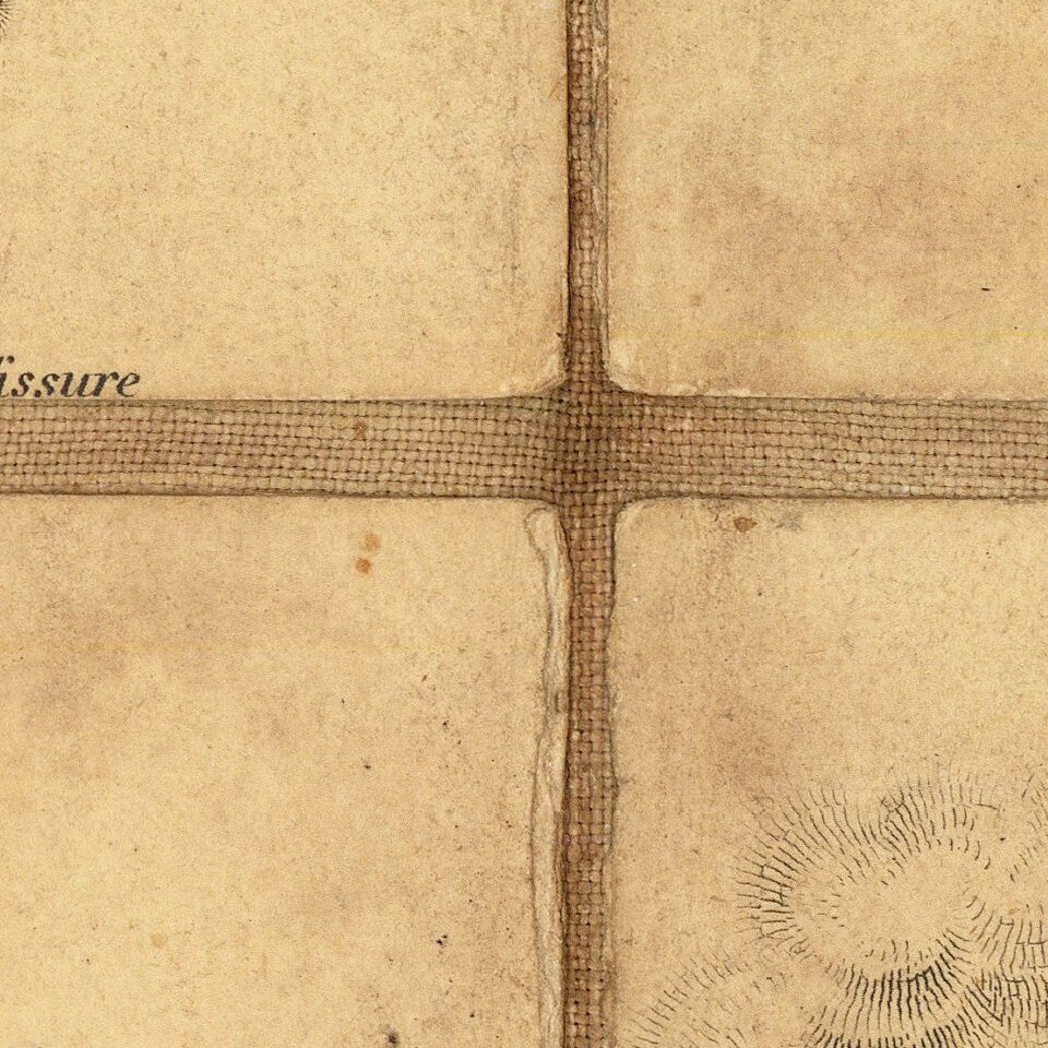 The most remarkable detail of this example of the map are the pencil annotations scattered over the islands. They correct parts of the hydrography, suggest additional rivers and lakes, and offer coordinates for two points in the south. They were possibly drawn by a government official involved with the immigration debates over New Zealand, a New Zealand Company representative, or, most likely, a mapmaker eager to correct the map, perhaps even someone in Wyld’s shop.