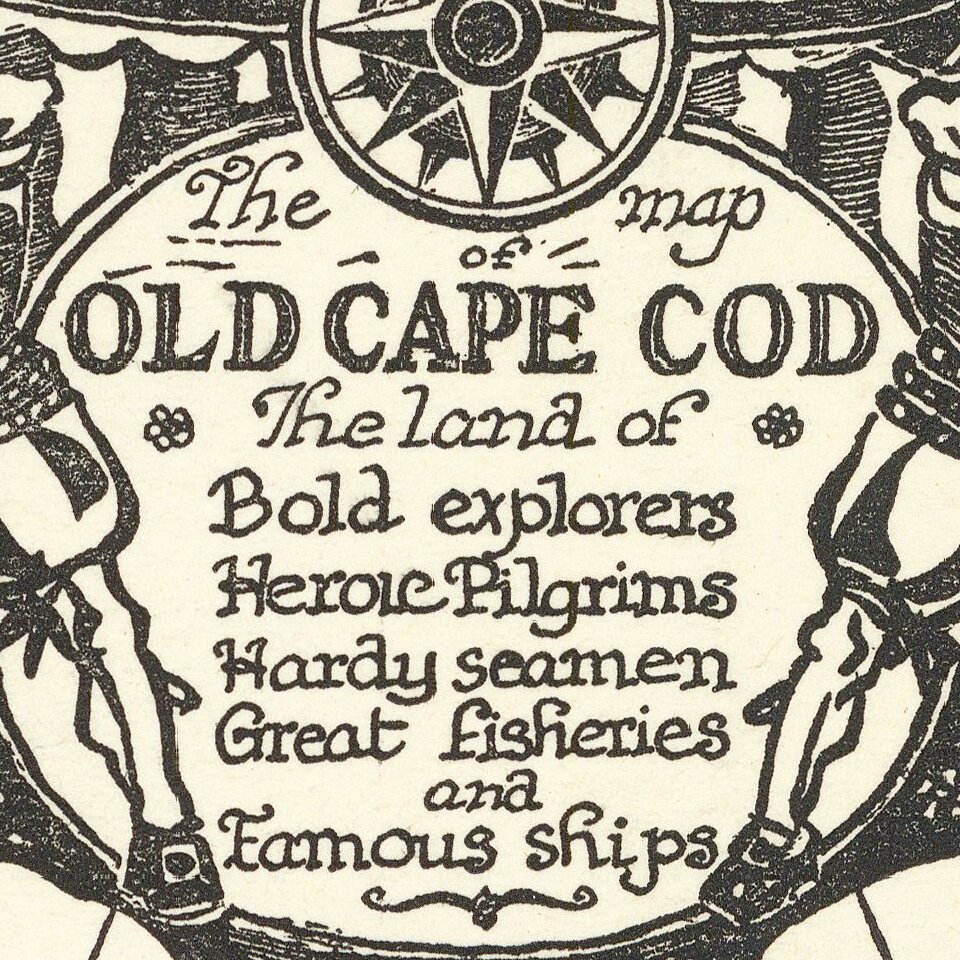 Coulton Waugh was the son of noted marine painter Frederick Waugh. The two Waughs differed artistically, yet they shared a love of the sea and were on the best of terms personally. Coulton was a professional sailor and made scale drawings of historic ships, designed fabrics, and made decorative maps and charts…Coulton Waugh was considered to have revived, if not originated the art of decorative map making when he exhibited a large map of silk in 1918 at the International Silk Show in New York City. His map of Cape Cod is one of the most decorative ever prepared. The central cartouche shows the Mayflower and two Pilgrims in armor. The border was reproduced from a drawing cut with a knife in the wood-block technique. The top and bottom borders are of a stylized Cape Cod landscape and the sides borders are decorated with the images of six famous ships. The Rose Dorothea appears in the lower right hand corner.