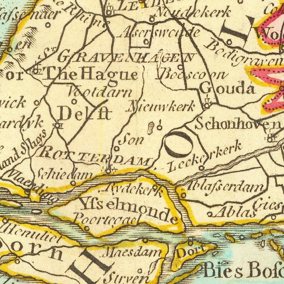 Nice detailed map of the Low Countries, colored by provinces.
