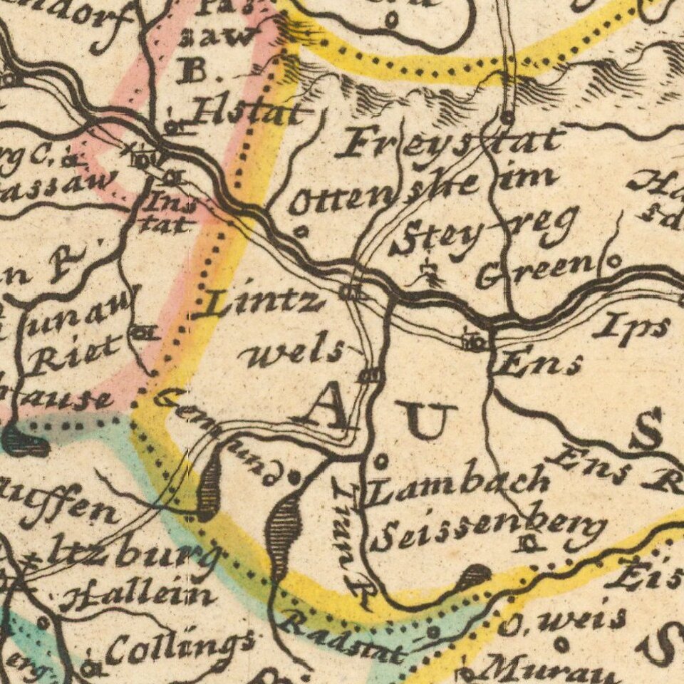 Interesting early 18th Century map of southeastern Germany.