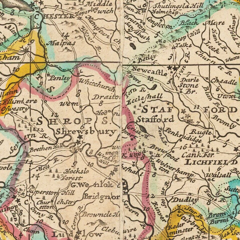 Herman Moll (c. 1654-1732) was one of the most important London mapmakers in the first half of the eighteenth century. Moll was probably born in Bremen, Germany, around 1654. He moved to London to escape the Scanian Wars. His earliest work was as an engraver for Moses Pitt on the production of the English Atlas, a failed work which landed Pitt in debtor's prison. Moll also engraved for Sir Jonas Moore, Grenville Collins, John Adair, and the Seller & Price firm. He published his first original maps in the early 1680s and had set up his own shop by the 1690s.