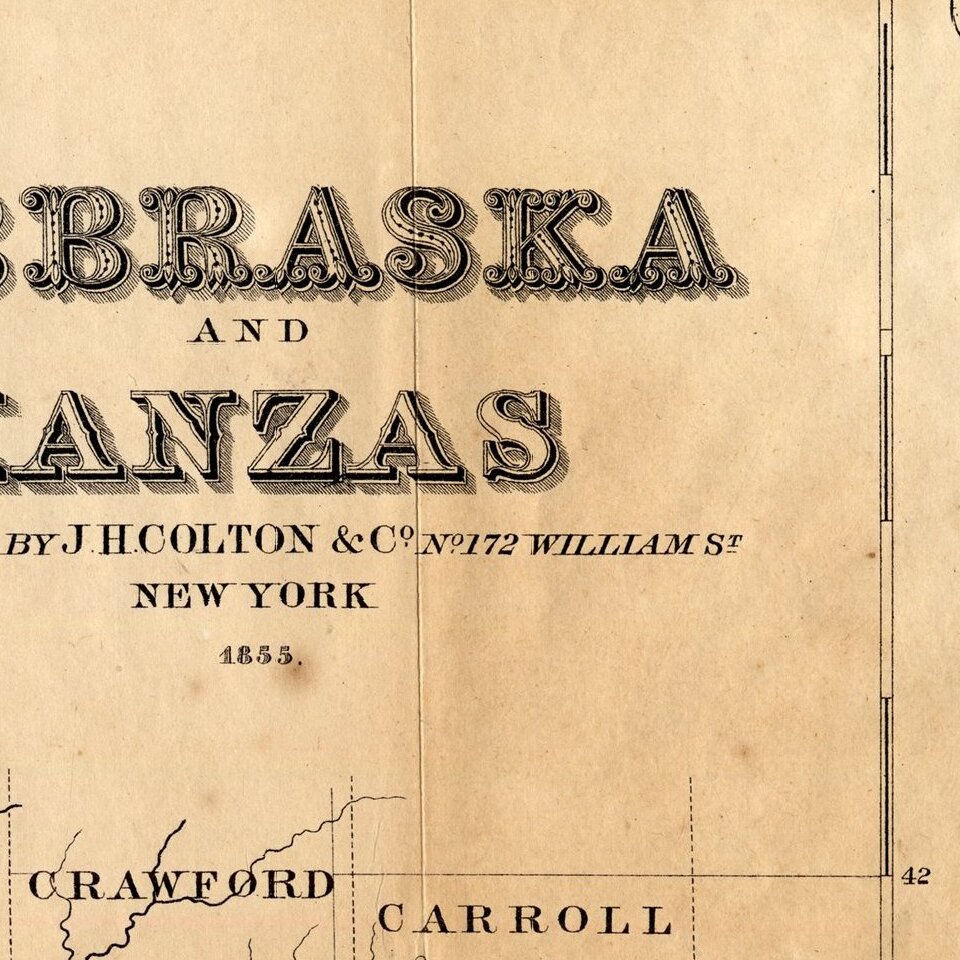 The second map is the precursor to a similarly formatted map of Nebraska and Kansas which began appearing in Colton's atlas circa 1858, but significantly pre-dates the atlas map, with fewer townships and earlier topographical details.