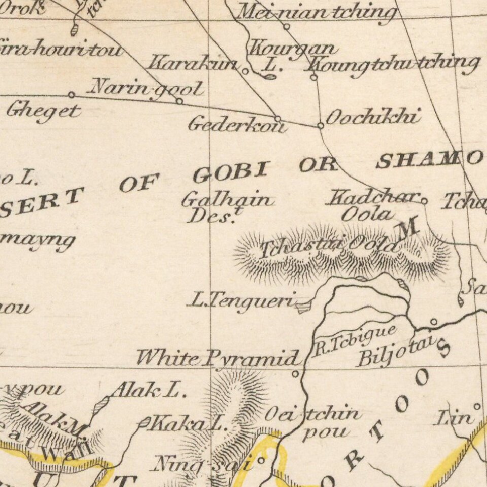 Striking full color example of this marvelous regional map. Extends to Nepal and Lake Balkach. Decorative vignettes of Dwelling of Tessaling Lama, Shigatei, Mausoleum At Teshoo Loom Boo, a Mongol Noble riding a camel, Fortress and Palace of the Dalai Lama, the Great Wall of China and Leh, Little Thibet. Engraved for R. Montgomery Martin's Illustrated Atlas. Tallis was one of the last great decorative map makers. His maps are prized for the wonderful vignettes of indigenous scenes, people, etc.
