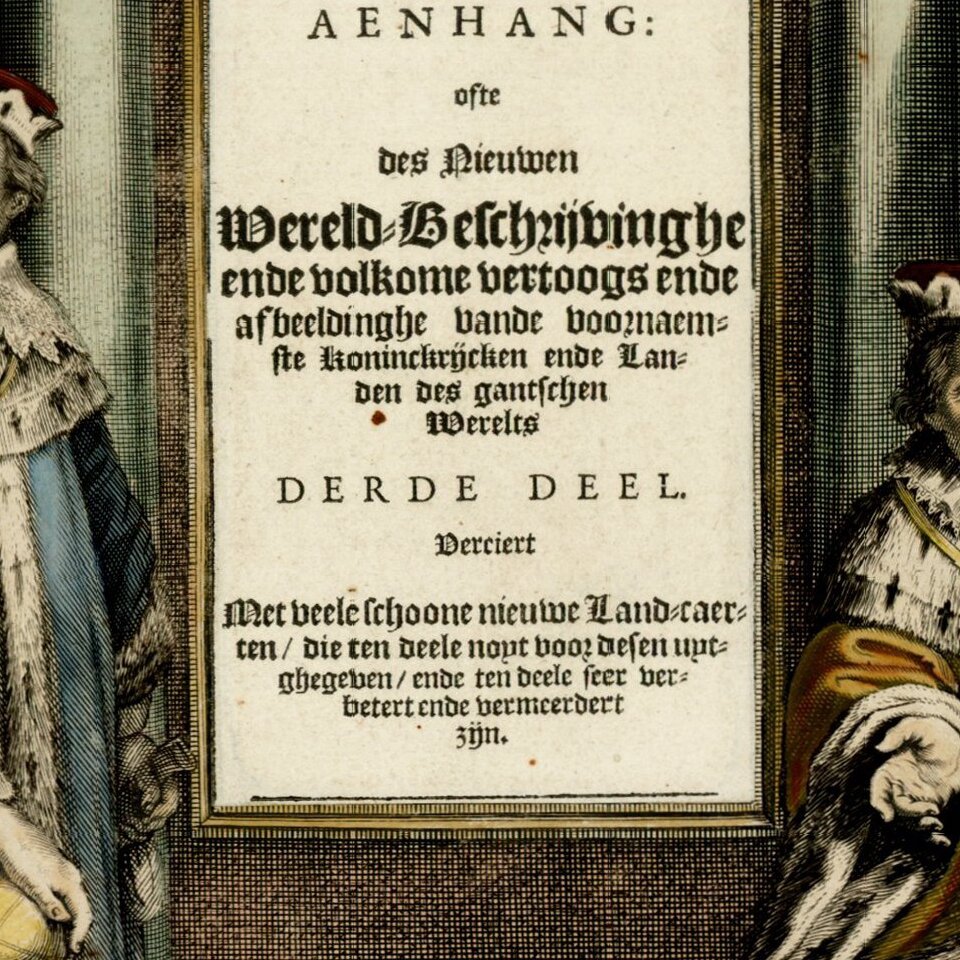 Striking old color example of the title page from Jansson's Atas Novus, first published in 1636.