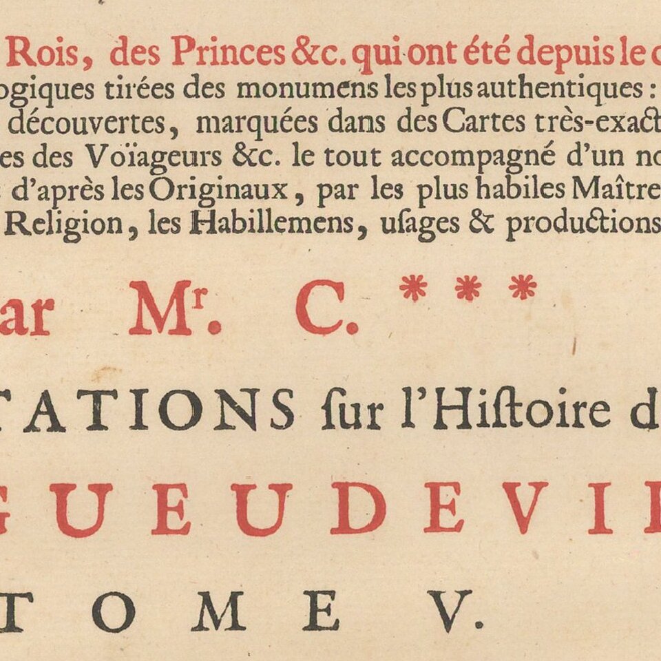 Henri Abraham Chatelain (1684-1743) was a Huguenot pastor of Parisian origins. Chatelain proved a successful businessman, creating lucrative networks in London, The Hague, and then Amsterdam. He is most well known for the Atlas Historique, published in seven volumes between 1705 and 1720. This encyclopedic work was devoted to the history and genealogy of the continents, discussing such topics as geography, cosmography, topography, heraldry, and ethnography. Published thanks to a partnership between Henri, his father, Zacharie, and his younger brother, also Zacharie, the text was contributed to by Nicolas Gueudeville, a French geographer. The maps were by Henri, largely after the work of Guillaume Delisle, and they offered the general reader a window into the emerging world of the eighteenth century.