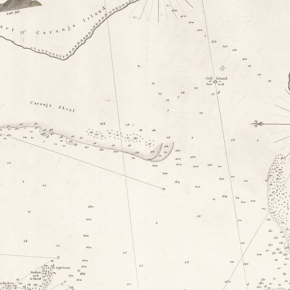 The chart was engraved by 'J. Walker'. This is John Walker Sr. of the Walker engraving family which operated in Liverpool and London from the 1780s to the 1870s. Walker Sr. was a hydrographer to the Admiralty and published numerous charts for both Alexander Dalrymple and James Horsburgh. John Walker Jr. succeeded Horsburgh as hydrographer to the EIC after the latter's death.