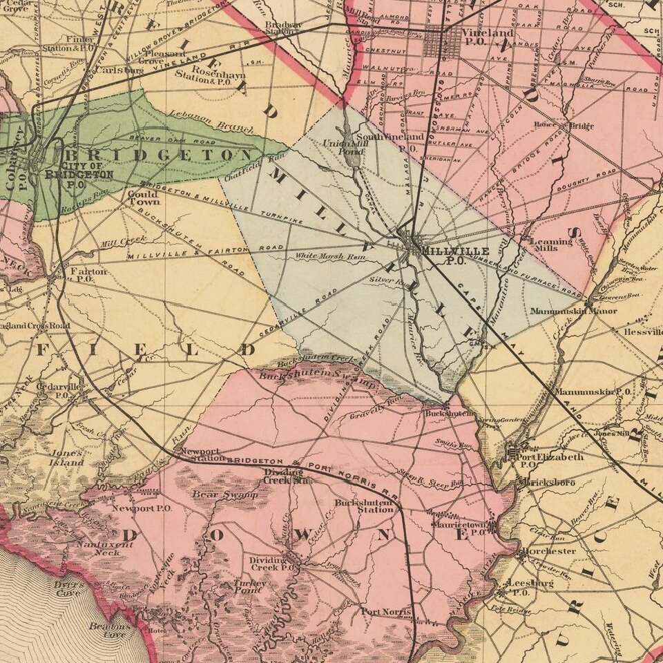 Detailed map of Cumberland County, from Beers Atlas of New Jersey.