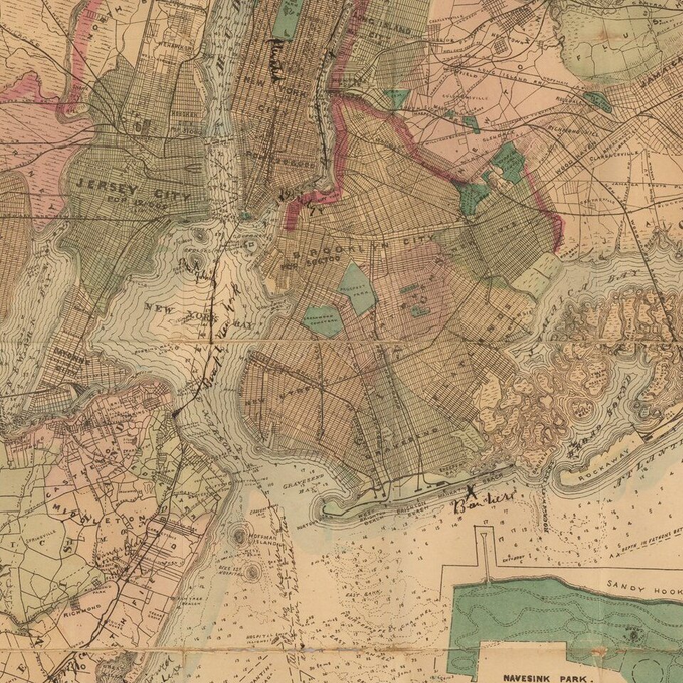 Detailed hand-colored lithographed map of the New York Metropolitan area, published in New York by Matthew Dripps.