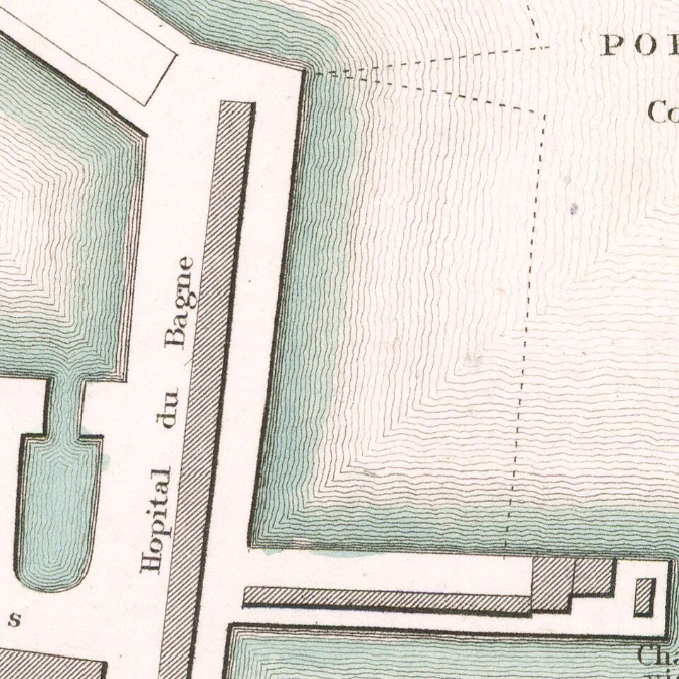 Fabulous town plan of Toulon, with a large panorama view of the City.