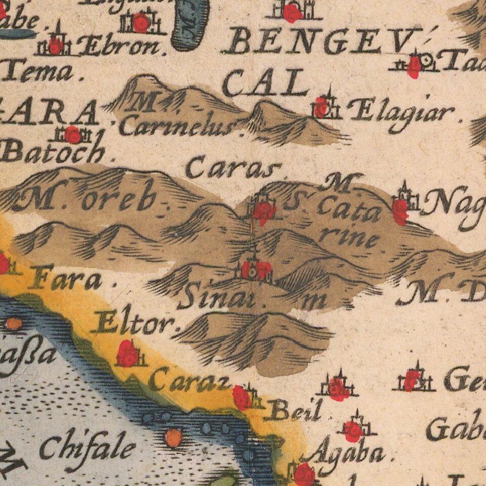 There are several other descriptions of note on the map. One paragraph, near Lake Actamar just below the Caspian Sea, describes the various names for the lake throughout history. It also mentions that the dried fish caught there are sold around the region. Resources and goods are important to Ortelius with regard to the Ottoman Empire, as he also mentions the famous market town of Ormus, capital of a tributary kingdom that answers to Lusitania. Near Jemen he mentions that the local incense is distributed around the world, while the aloe of Zocotara is also singled out for praise. Finally, of note because it was representative of the popularity of the myth, near the Nile is the inscription, "Here rules Prester John far and wide, king of all of Æthiopia."
