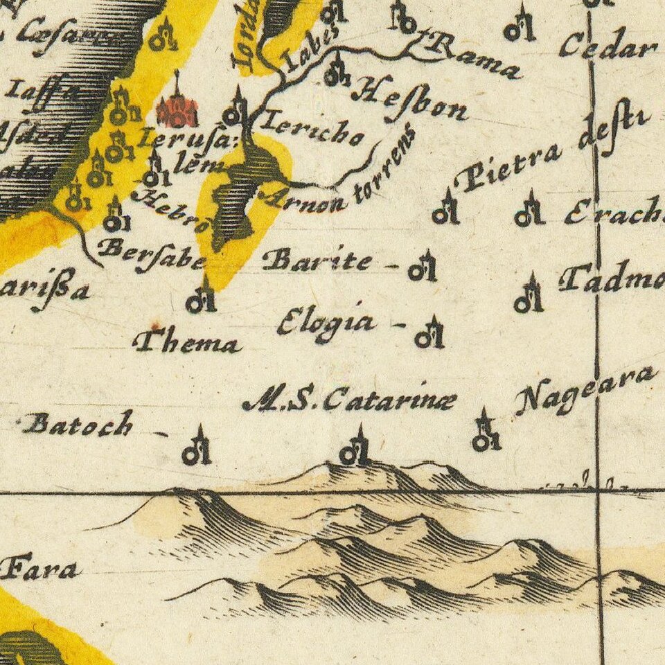 Jan Janssonius (also known as Johann or Jan Jansson or Janszoon) (1588-1664) was a renowned geographer and publisher of the seventeenth century, when the Dutch dominated map publishing in Europe. Born in Arnhem, Jan was first exposed to the trade via his father, who was also a bookseller and publisher. In 1612, Jan married the daughter of Jodocus Hondius, who was also a prominent mapmaker and seller. Jonssonius’ first maps date from 1616.