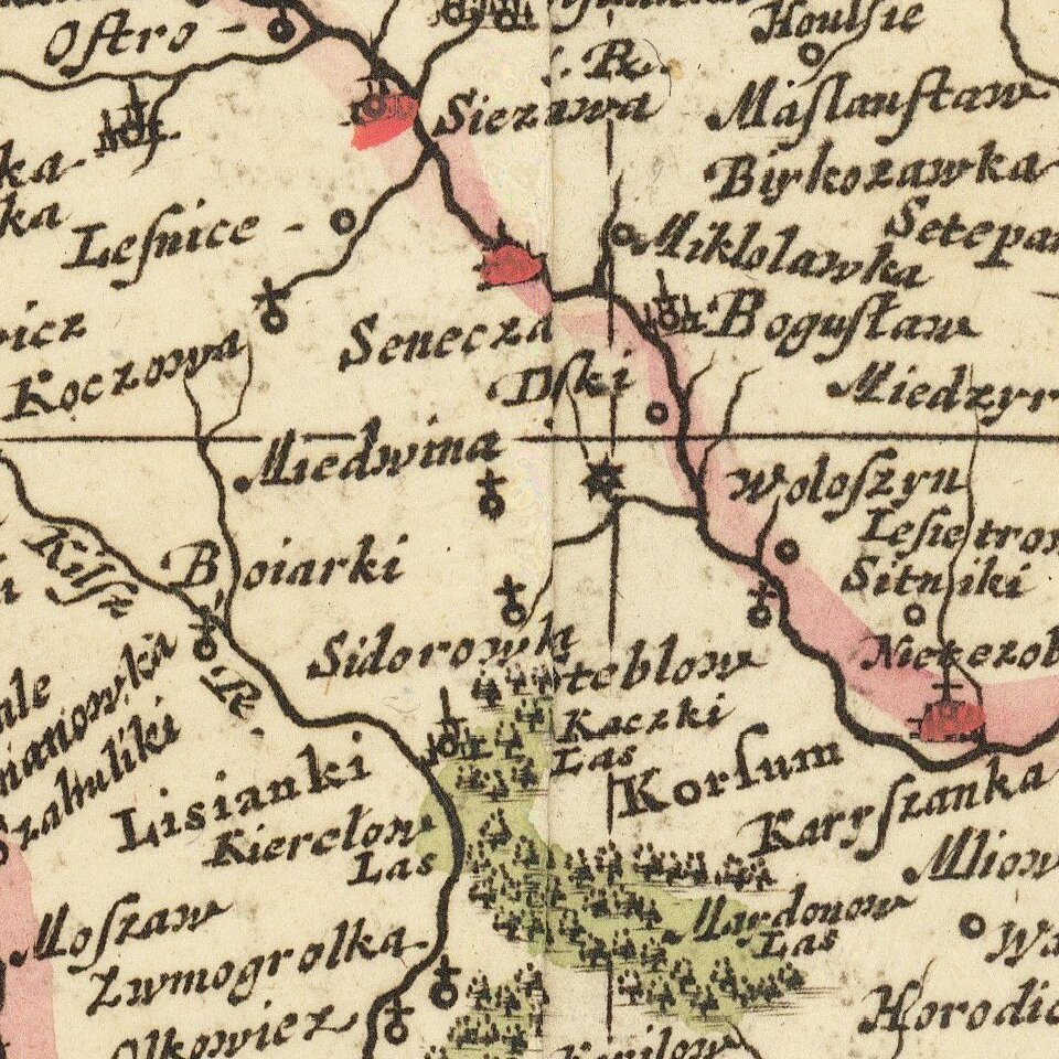 Finely colored example of Moses Pitt's map of Ukraine, divided into provinces, which appeared in a composite atlas by Abraham Wolfgang.