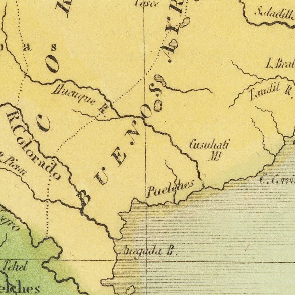 Striking map of the southern portion of South America, colored by provinces.