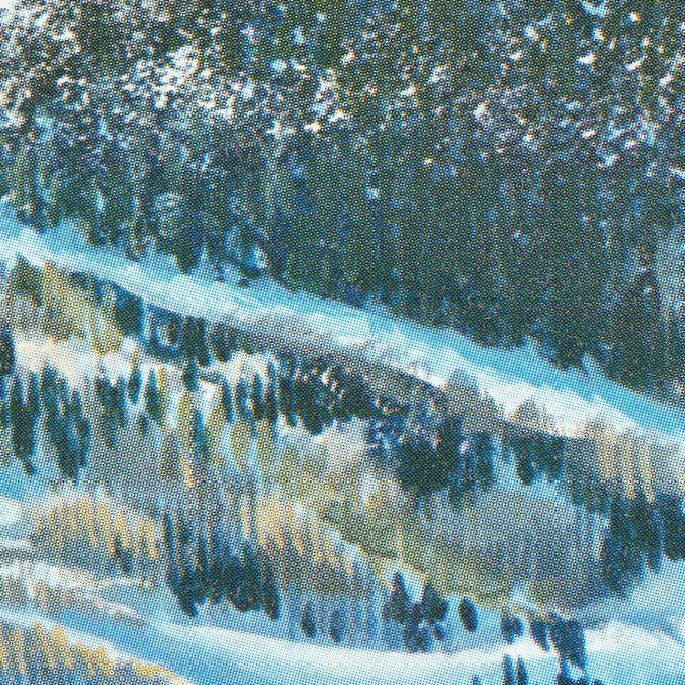 “The first notable ski map artist in North America was a California native named Hal Shelton, born in 1916. During his early career Shelton worked as a cartographer for the U.S. Geological Survey, and is known for his innovative ideas regarding natural color maps and contour shading (Patterson & Kelso 2004). By the early 1960s Shelton was an established cartographer living in Colorado at the epicenter of the ski resort construction frenzy. Shelton’s professional training in cartography, user-friendly mapping techniques, and ideal location in Colorado provided him with the perfect credentials to create impressive maps for the new resorts…. Shelton hand-painted panoramas for several world-class resorts including Bear Valley, Alta, and Mammoth…. His paintings are characterized by a realistic color palette, thick brushstrokes for background features, and individually painted trees in the foreground…. Shelton’s work was well-received, and he dominated the ski mapping industry in the western United States for much of the 1960s and 70s.” (Lippus, pp. 50-51)