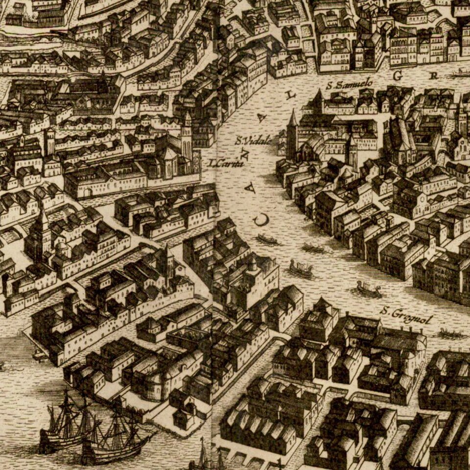 Shows the Grand Canal, Piazza San Marco, Ponte Rialto and other major landmarks.