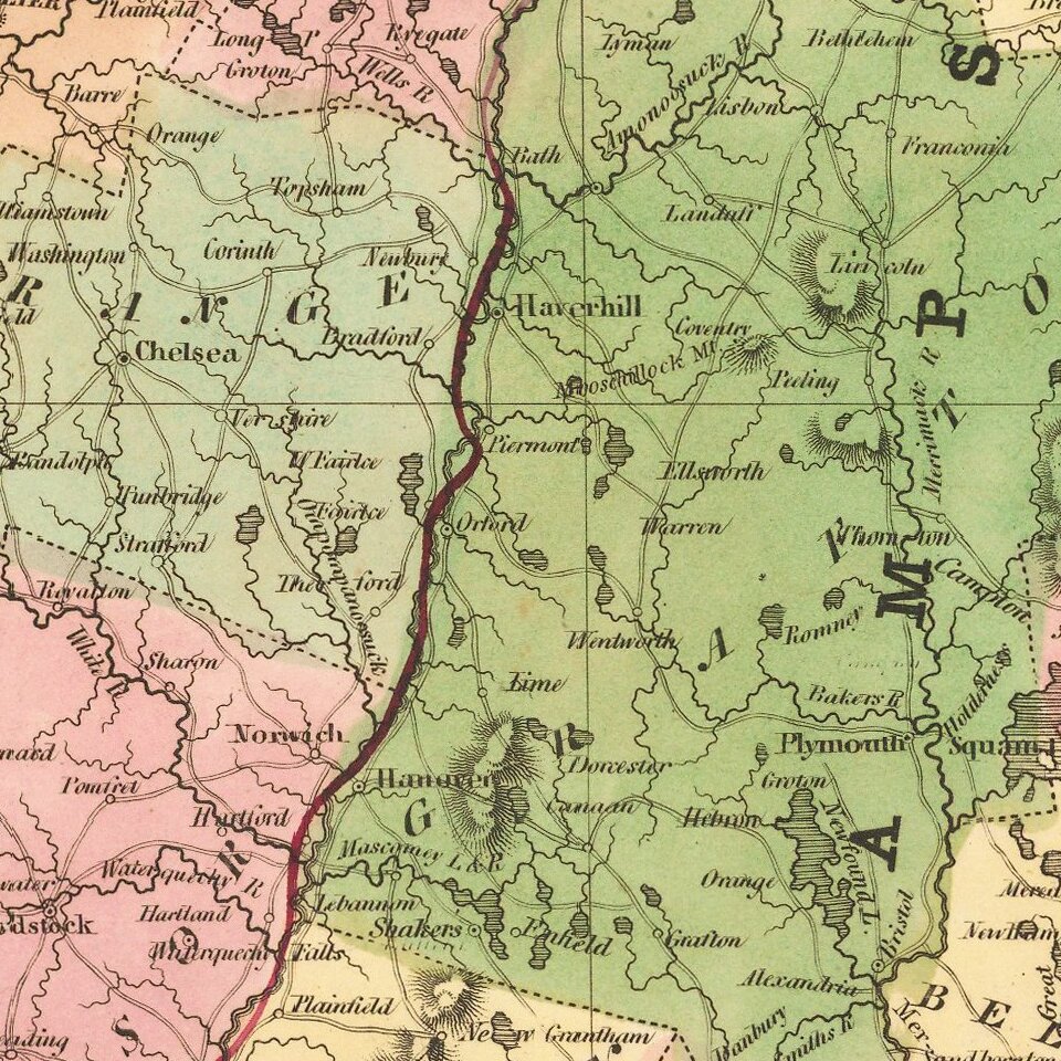 Nice wash color example of Greenleaf's map of Vermont & New Hampshire, hand colored by counties.