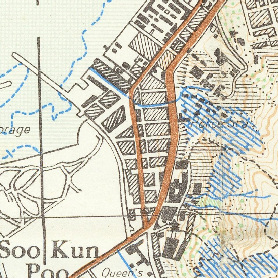 Detailed map of Victoria Harbour produced by D Survey, War Office and Air Ministry in 1957.
