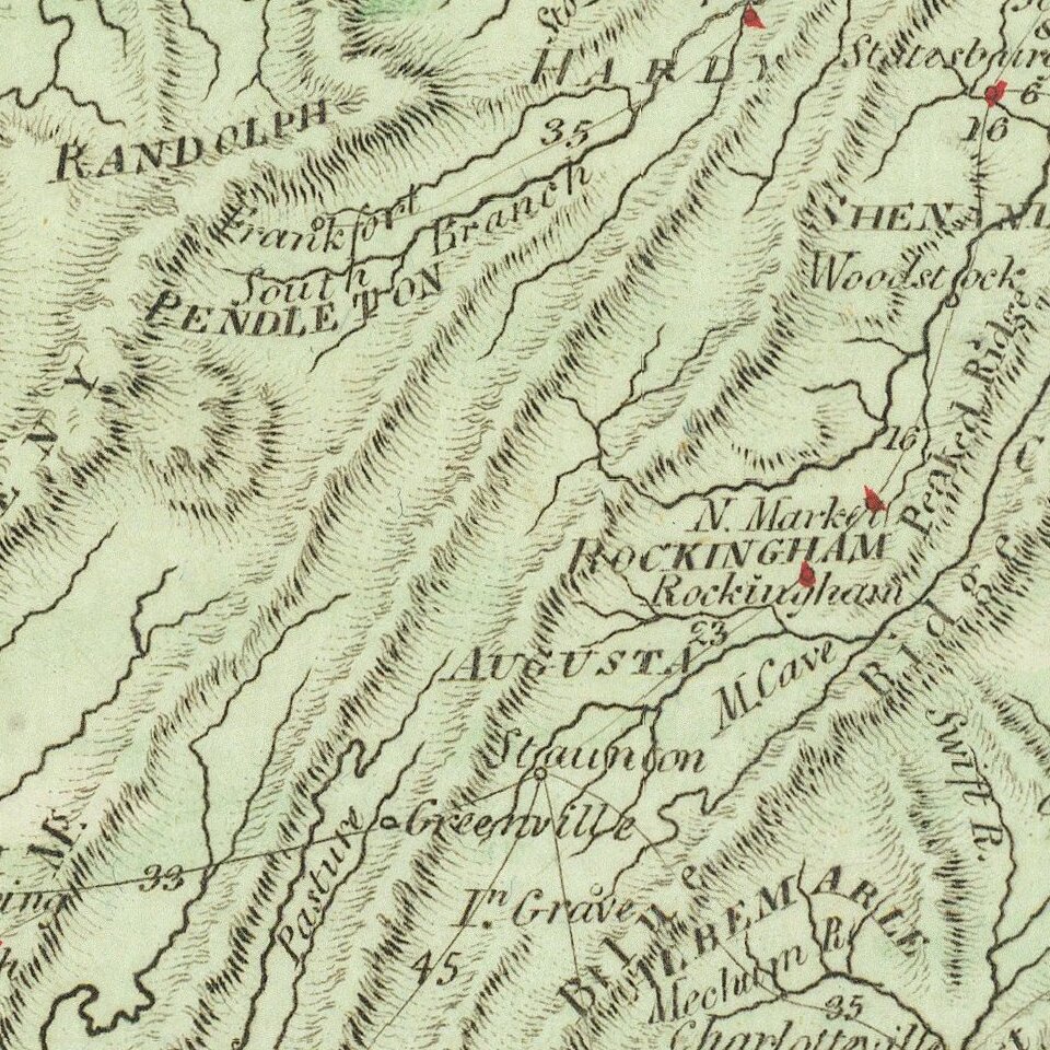 Early engraved map of Virginia, published in Philadelphia in 1804.