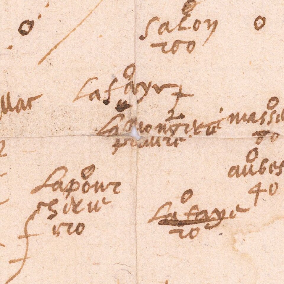 We estimate the date of the map based upon opinions on the handwriting as being from the late 16th Century. We offer a second map in the same early hand for the area near Venaissin here: https://www.raremaps.com/gallery/detail/60728