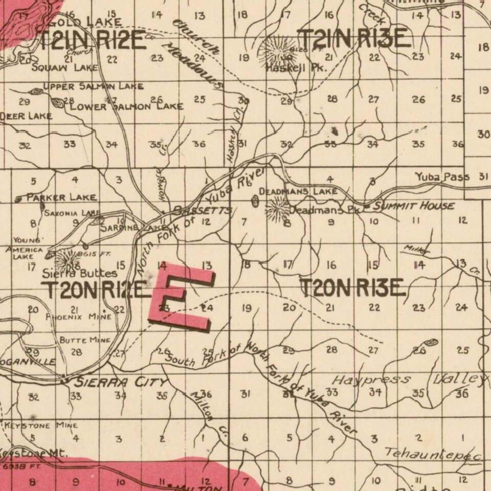 The map shows early railroads, roads, wagon roads, mines, lakes, mills, and many other details.